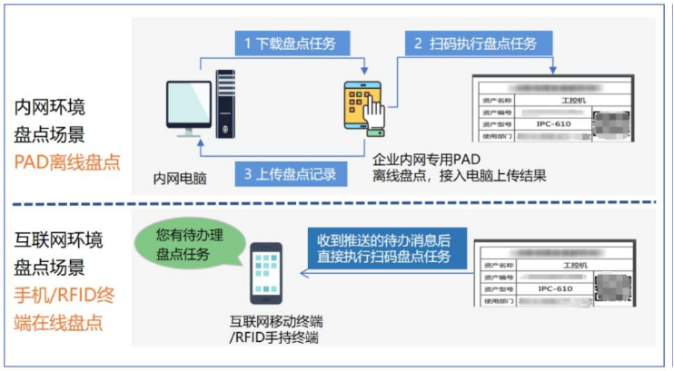 移動智能應(yīng)用:通過RFID等智能標簽和智能手持終端設(shè)備,實現(xiàn)在資產(chǎn)現(xiàn)場的快速數(shù)據(jù)采集,實現(xiàn)智能范圍管控和資產(chǎn)快速盤點。