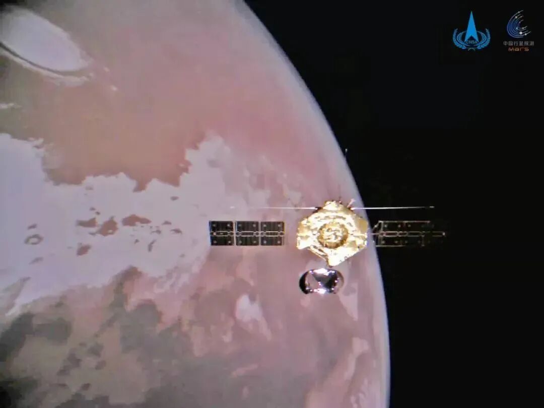 天問一號探測器(環(huán)繞器)與火星“合影”